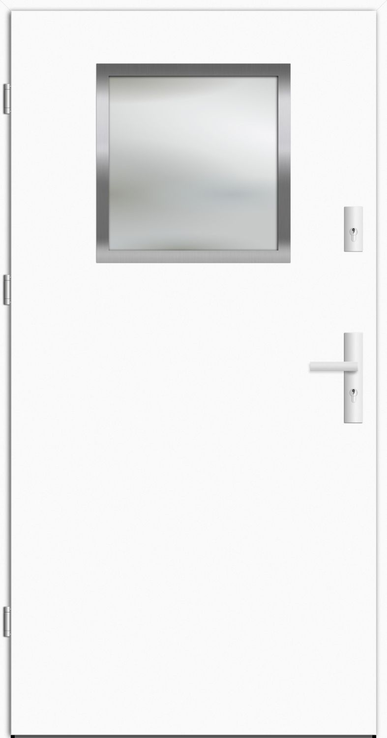 Unsere Aluminium-Stahl Nebeneingangstür "AKARI" 68 mm eignet sich hervorragend als Zugang zu Stall, Garten oder Geräteraum. Die schlichte Optik und eine Fertigung in Verkehrsweiß oder Anthrazitgrau/Eisenglimmer oder Holzdekor Golden Oak oder Nussbaum machen die Tür flexibel im Einsatz. Die Aluminium-Stahl Oberfläche macht die Tür robust und widerstandsfähig. Das Modell AKARI ist in den Maßen 88 cm x 205 cm, 90 cm x 207 cm, 90 cm x 200 cm, 100 cm x 200 cm, 100 cm x 207 cm oder 110 cm x 207 cm verfügbar. Ausgestattet mit einer 2x Drei-Bolzen-Tresor-Verriegelung, sowie 3x Hinterbandbolzen, bietet die Tür einen soliden Einbruchschutz. Da häufig Nebeneingänge sehr beengt sind, bietet die Tür mit der Öffnungsrichtung nach außen oder innen den Vorteil selbst zu entscheiden, welche Variante für Ihren Eingangsbereich am besten geeignet ist. Ausgestattet mit einer Verglasung in Satinato (Milchglas), spendet die Tür Ihrem Eingangsbereich eine dezente Lichtquelle. Nutzen Sie die Vorzüge der Tür für Ihren Seiteneingangsbereich!